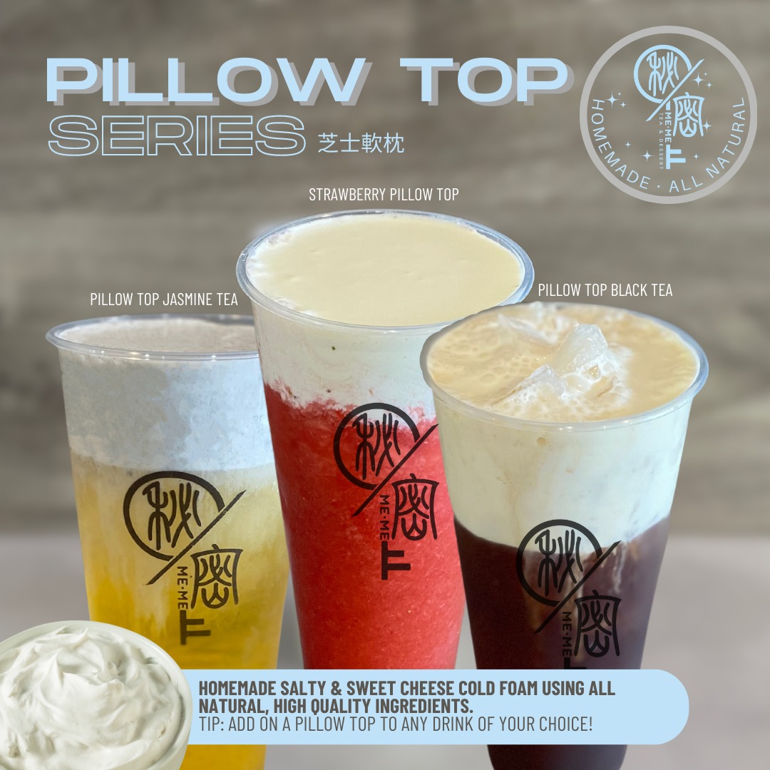 One of the highlights of Me·me Tea & Dessert is their signature Brown Sugar Boba Fresh Milk. This sweet and creamy drink features rich brown sugar syrup paired with smooth milk and chewy boba pearls, creating the perfect balance of sweetness and texture. Another standout is the Tie Guan Yin with Boba, a comforting blend of the famous Tie Guan Yin tea with the delightful chewiness of boba. For those looking for something a bit more refreshing, the Sparkling Strawberry Lime Tea offers a bubbly burst of tangy lime and sweet strawberry flavors, making it an ideal choice on a warm day. And if you're a fan of fruity teas, their Peach Black Tea is a must-try, with a delightful peachy sweetness that perfectly complements the robust black tea.